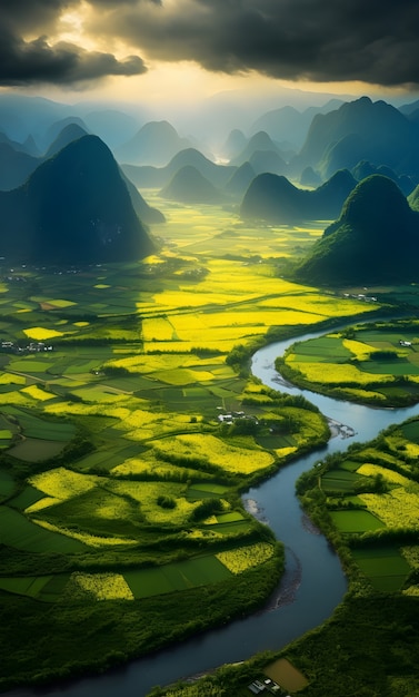 Ôi chao, bức ảnh phong cảnh Việt Nam này đẹp đến nỗi tôi muốn nhảy ùm xuống dòng sông! Chắc chắn là một điểm đến lý tưởng cho những ai mê mẩn vẻ đẹp tự nhiên.