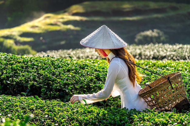 Ôi chao! Cô gái này đang lạc trôi giữa đồi chè xanh mướt, chắc hẳn đang tận hưởng không khí trong lành của vùng cao. Chắc hẳn đây là một góc ảnh phong cảnh việt nam tuyệt đẹp!