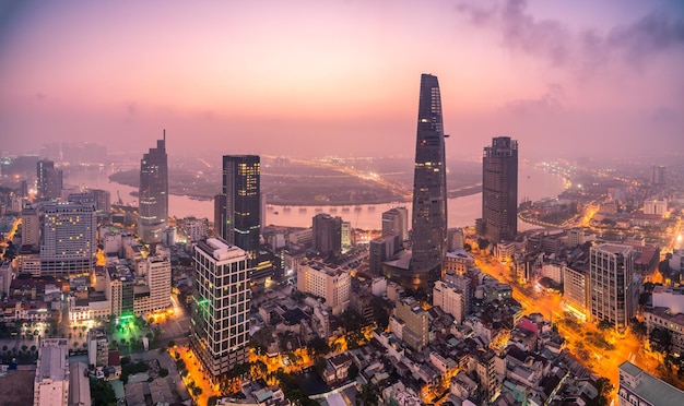 Chao xìn! Tấm ảnh này cho thấy toàn cảnh thành phố Việt Nam vào lúc hoàng hôn. Đẹp đến ngỡ ngàng, tưởng tượng như đang trong một bộ phim hành động vậy!