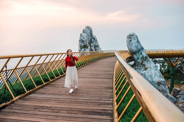 Ôi chao! Cây cầu Vàng ở Bà Nà Hills này đẹp đến mức muốn nhảy cẫng lên! Ai mà thèm thuồng một chuyến du lịch Đà Nẵng, ngắm cảnh quan tuyệt vời của đất nước Việt Nam!